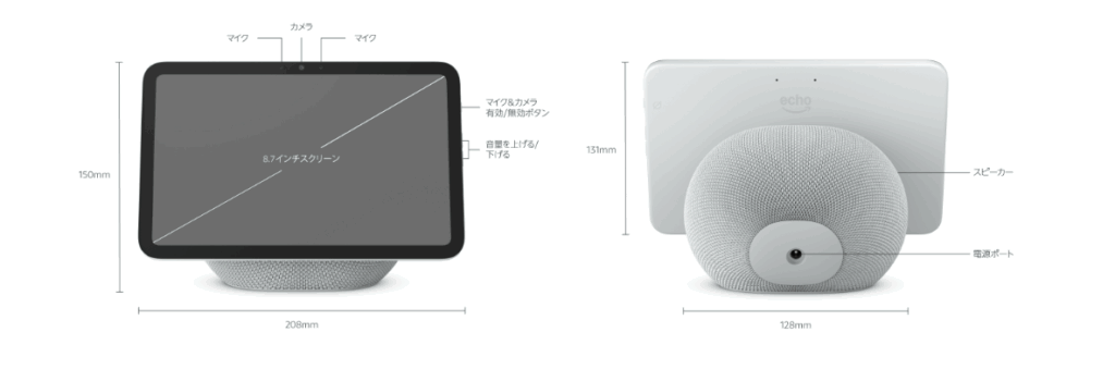Echo Show 8 | 8.7インチ HD (1340 x 800) | 既存の8インチモデルから画面サイズを8.7インチに改良。キッチンや寝室に最適なサイズ感。 |