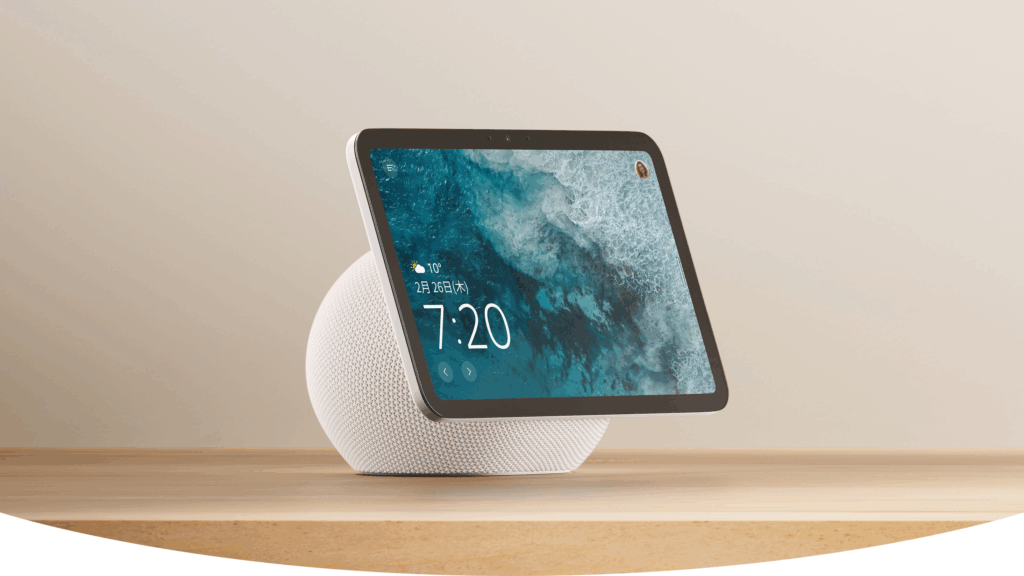 新モデルでまず目を引くのは、その洗練されたデザインです。ベゼルが大幅に狭くなり、前面の13MPカメラがよりシームレスに統合されました。これにより、設置場所を選ばない、よりモダンでインテリアに馴染む外観を実現しています。