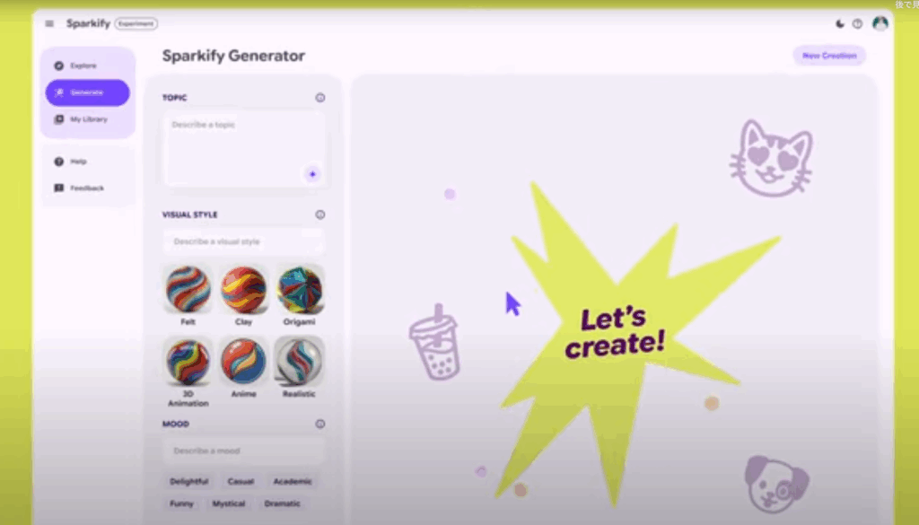 この中で唯一、公式の場でその名が語られているのが「Sparkify」です。Googleは開発者向けイベント「I/O 2025」で、この実験的なAI機能を発表しました。その正体は、Googleが誇るAIモデル「Gemini」と動画生成AI「Veo」を組み合わせ、ユーザーの質問やアイデアをもとに、オリジナルのアニメーション動画を自動で生成するツールです。