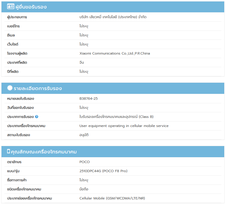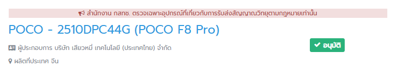 さて、今回飛び込んできた情報の核心は、タイのNBTC(国家放送電気通信委員会)認証です。ここで「2510DPC44G」というモデル番号が確認され、これがグローバル版「Poco F8 Pro」のものであることが確定しました。