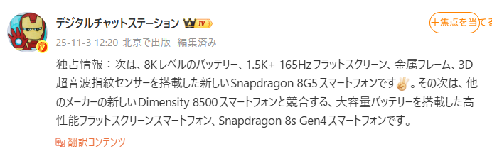 しかし、今回のリーク情報の主役は、その「Elite」の称号を持たない、標準の「Snapdragon 8 Gen 5」を搭載するモデルです。