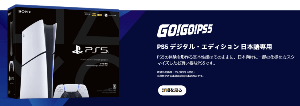 🎮 PlayStation 5 デジタル・エディション 日本語専用 – 製品情報