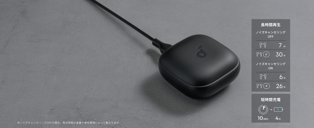 - 充電: USB-C急速充電(10分で最大4時間再生) ※ワイヤレス充電は非対応