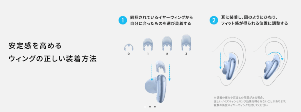まず驚くべきは、その軽さ。片耳わずか約4.9g。これはAnkerの主力であるLibertyシリーズにおいて最小・最軽量です。 インナーイヤー型は「どうせ耳から落ちやすいんでしょ?」という疑念を持つ方も多いでしょう。しかし、Ankerは「4サイズの取り外し可能なイヤーウィング」というカードを切ってきました。