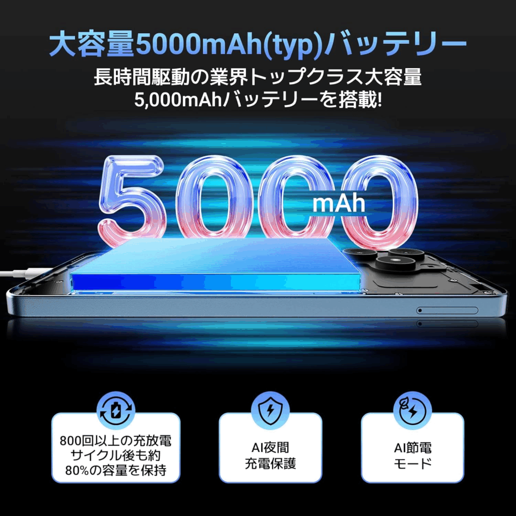 5,000mAhという大容量バッテリー。これは、ハイエンドモデルの高級機(iPhone 15 Pro Maxなど)に匹敵する、あるいは超える容量です。正直、これだけは褒められるポイントです。