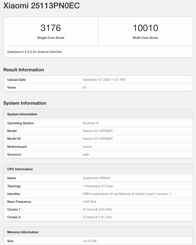 - モデル番号: 25113PN0EC(中国版の可能性)、25113PN0EG(グローバル版の可能性)