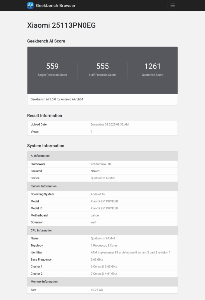 Xiaomi 17とされるモデルは、すでにベンチマークプラットフォームのGeekbenchにその姿を現しています。この情報こそが、今回の早期発売説に信憑性を与えている最大の要因です。