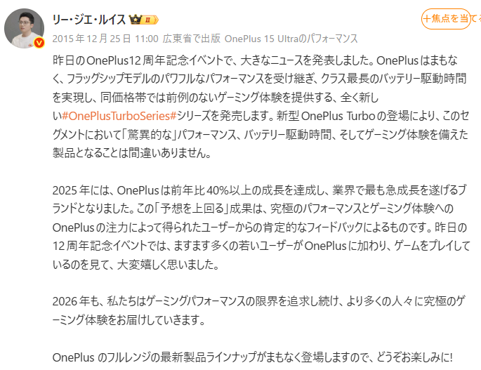 2025年も暮れようとしている今、中国のOnePlusから飛び込んできた「Turboシリーズ」のニュースは、単なる新製品の発表以上の意味を持っています。9,000mAhという、常識を覆すバッテリー容量。