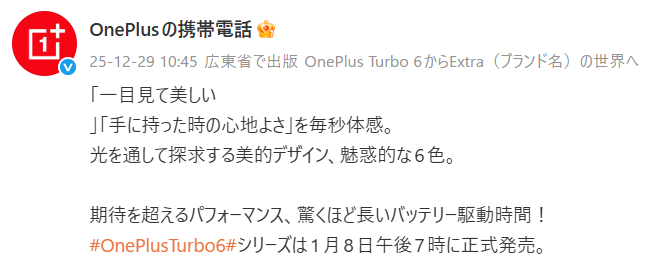 OnePlusが突如として発表した新シリーズ「OnePlus Turbo 6」