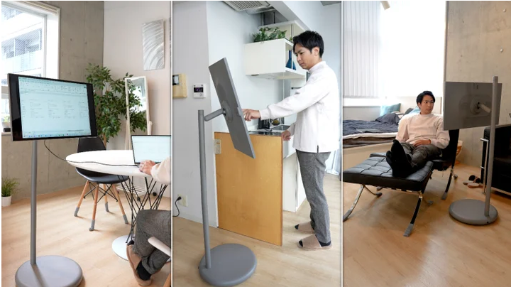 この商品の最大の特徴は、キャスター付きのスタンドに載った27インチの巨大な画面が、指先一つでスマホと同じように動くという点です。