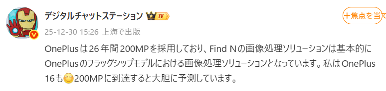 著名なリーカー、Digital Chat Station氏がWeiboに投下した爆弾発言。それは「OnePlus 16には200MP(2億画素)センサーが搭載される」というものでした。