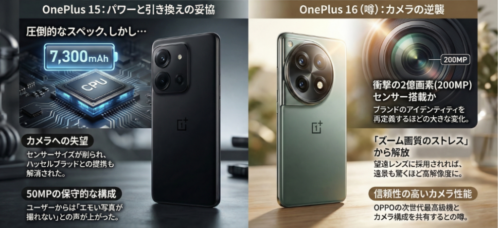 OnePlus 16は、単なる15の後継機ではありません。それは、性能に全振りしてしまった過去の自分を反省し、ユーザーが日常で最も触れる「写真」という体験に再び光を当てたモデルになるでしょう。