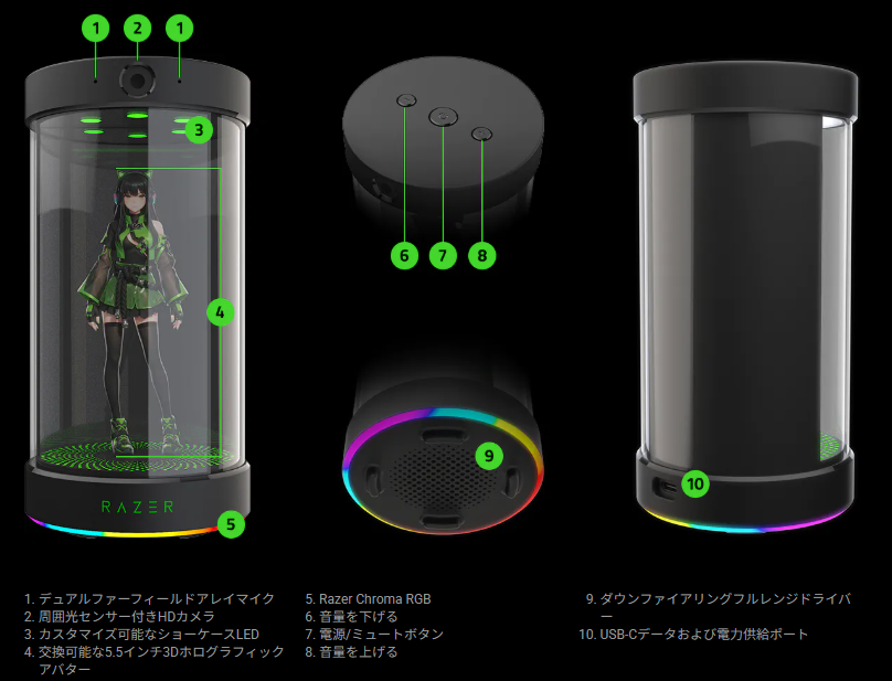 - 表情豊かな3DアバターとLEDライティング