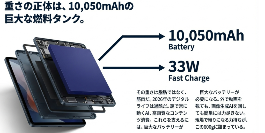 | バッテリー | 9510mAh / 67W急速充電 | 1日中、充電器を忘れていい自由 |