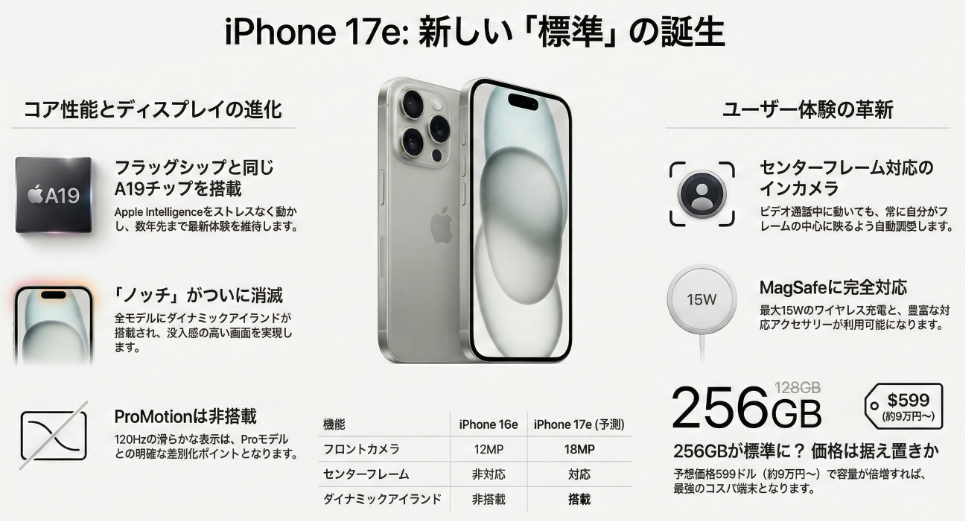 2026年が幕を開けた今、私たちの関心は「最も賢い選択肢」と目される次なる一手、iPhone 17eへと向けられています。高価なProモデルを横目に、「自分にはこれで十分じゃないか?」という期待と、安さゆえの妥協への不安が入り混じる時期。