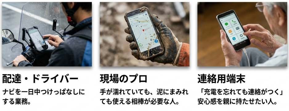 このA6s 5Gは、決してクリエイターやガジェットマニアのためのものではない。現場仕事で手が濡れている人、配達業務で一日中ナビを出し続ける人、あるいは、親に持たせる「とにかく充電を忘れても連絡がつくスマホ」を探している人。
