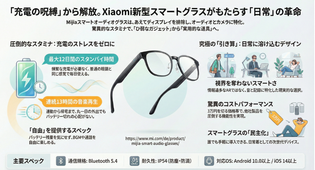 この手軽さこそが、Xiaomiが狙っている「スマートグラスの民主化」の正体なのだ。