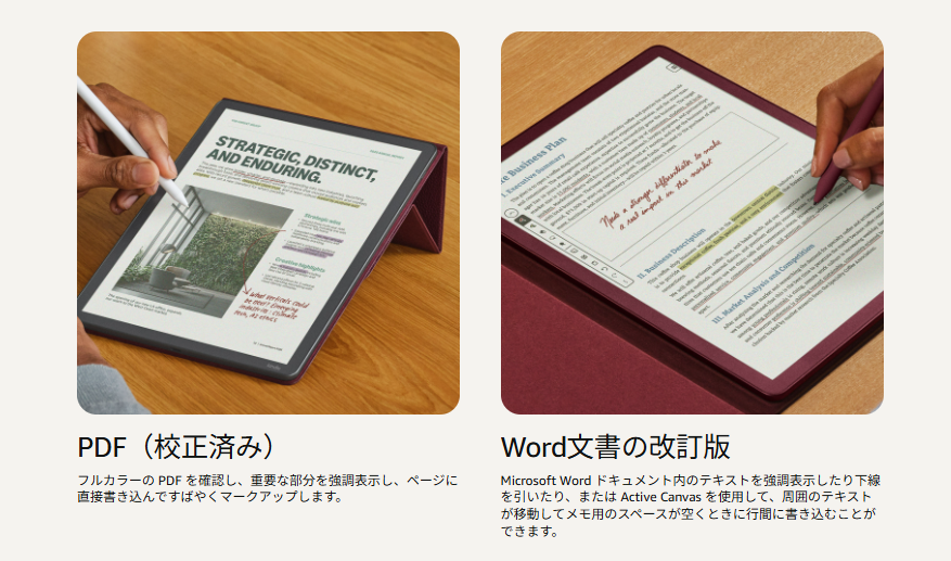 Google DriveやOneDriveからドキュメントを直接インポートし、専用ペンで書き込む。