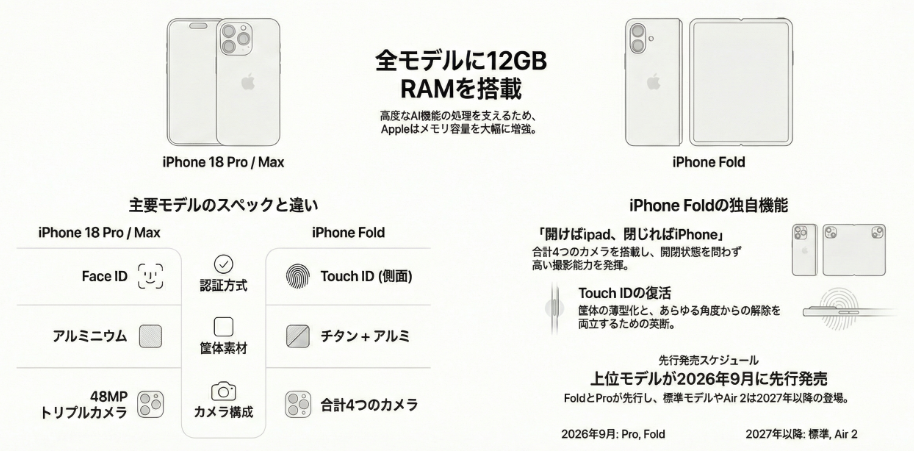 今回のリークで最も注目すべきは、発売スケジュールの大きな変更だ。例年であれば全モデルが9月に一斉発売されるが、2026年は少し様子が違う。