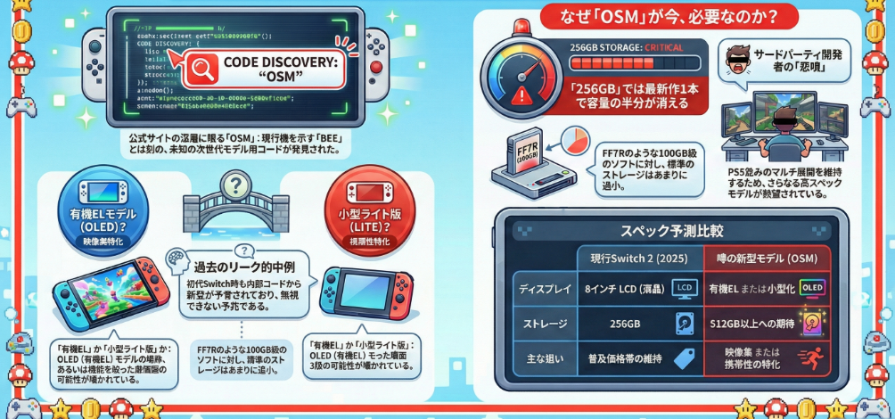 OSMというコードは、そうした開発現場の熱を冷ますための、任天堂からの返答(アンサー)なのかもしれない。ハードウェアの進化スピードが、任天堂の想定を上回ってしまった。その焦燥感が、この3文字に凝縮されているように思えてならないのだ。