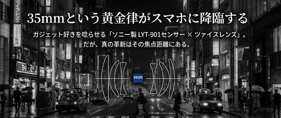 ガジェット好きなら、ソニー製LYT-901センサーとツァイスレンズの組み合わせというだけで飯が三杯は食えるだろう。 しかし、私が本当に震えたのはそこではない。 35mmという焦点距離へのこだわりだ。
