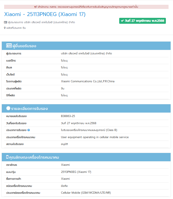 ガジェットオタクの皆さん、深呼吸をして聞いてほしい。今回、タイのNBTCで確認された最新のラインナップは、以下の3機種になる見込みだ。
