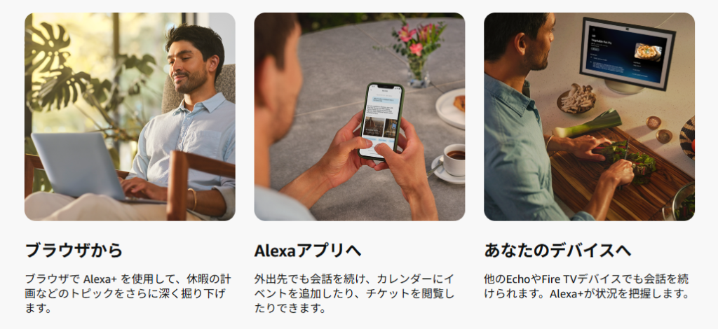 特筆すべきは、デバイスをまたいだ「文脈の共有」だ。パソコンのブラウザで始めた旅行の相談を、外出中にスマホアプリで引き継ぎ、帰宅後にEchoスピーカーで最終確認する。そんなシームレスな体験が、ついに現実のものとなった。