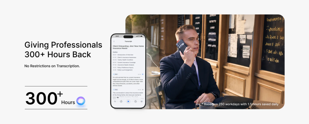 ハードウェアとしての完成度も、従来のレコーダーとは一線を画す。厚さわずか0.12インチ(約3mm)という驚異的な超薄型設計は、スマートフォンに貼り付けても違和感なく、ポケットやノートの隙間に忍び込ませておける。それでいて45時間の連続駆動を可能にするバッテリー性能は、出張や長時間の会議が続くプロフェッショナルの現場でも、電池切れの不安を抱かせることはない。