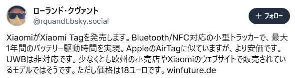 「正確な場所」を知りたいユーザーはAirTagを、「安価に大量に設置して紛失を防ぎたい」ユーザーはXiaomi Tagを。そんな住み分けが生まれるかもしれないが、OSの垣根を越えたこのタグが、停滞気味だったサードパーティ製トラッカー市場を再び活性化させる起爆剤になるのは間違いない。