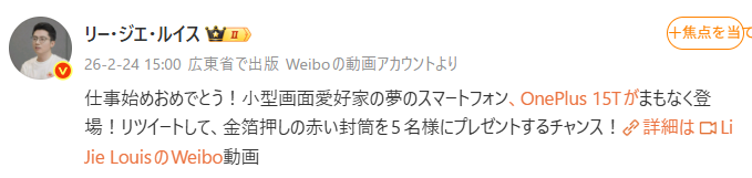 大画面化が正義とされる現代のスマートフォン市場に、明確な反逆児が誕生しようとしている。OnePlusが正式に存在を明かした次期コンパクトモデル「OnePlus 15T」。