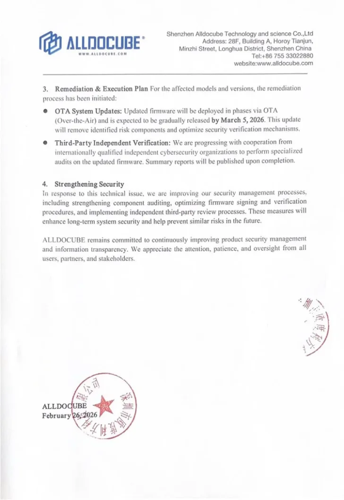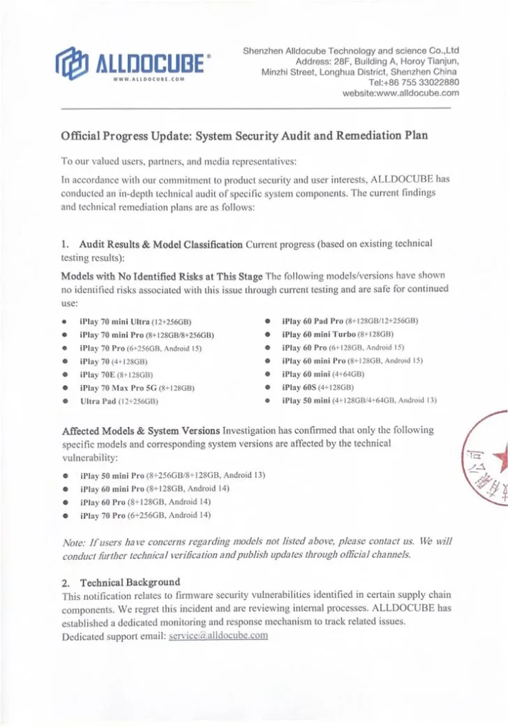 手頃な価格と必要十分なスペックで人気を集めるAlldocubeのタブレット。その中核であるファームウェアがマルウェアに汚染されていたという事実は、格安デバイス市場に冷や水を浴びせた。同社は事態を重く受け止め、2026年3月5日までにOTAアップデートによる修正を約束している。