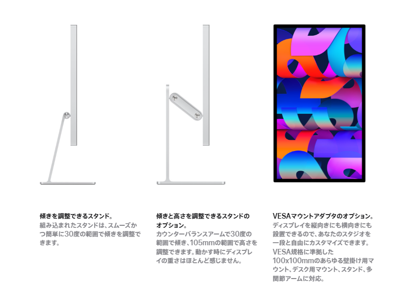価格設定の強気さも際立つ。 標準ガラスとチルト調整スタンドの最小構成で269,800円。 高さ調整スタンドを選べば339,800円に跳ね上がり、反射を抑えるナノテクスチャガラスモデルは最低でも319,800円。