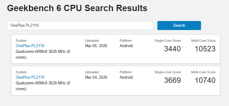 OnePlus 15T (PLZ110) spotted on Geekbench
