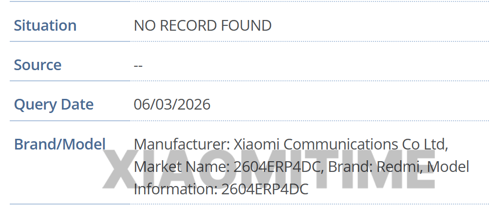 データベースに記載されたモデル番号は、2604ERP4DG、2604ERP4DC、2604ERP4DIの3つ。末尾のアルファベットが示す通り、グローバル、中国、インドと世界規模での展開を見据えた布陣だ。