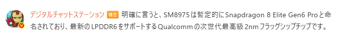 最大の焦点は、SoCに採用される次世代チップセット。著名リーカーのDigital Chat Station氏が指摘したコードネーム「SM8975」、すなわち「Snapdragon 8 Elite Gen 6 Pro」の搭載。
