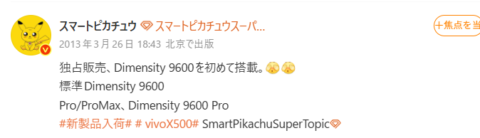 中国のSNS、Weiboの著名リーカーであるSmart Pikachu氏の最新情報によると、MediaTekは次期フラッグシップとして「Dimensity 9600」および「Dimensity 9600 Pro」の2種類を準備しているという。