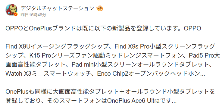 情報の出どころは、数々の的中実績を持つ著名リーカー、Digital Chat Station氏だ。同氏によると、Oppoは近日発売予定の製品リストにOppo Watch X3 Miniを明確に登録したという。先行して発表された折りたたみスマホFind N6と共に、次なる主力ラインナップの一角を担うのは確実な情勢だ。
