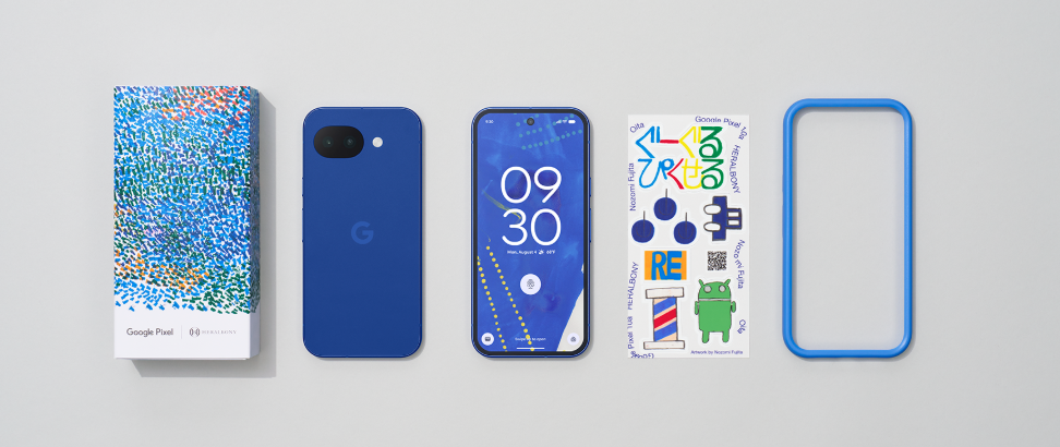 単なる「青色」の追加ではない。福祉を起点に新たな文化を創るクリエイティブ企業「HERALBONY」との協業によって生まれたこの端末は、専用の特製バンパーケースやステッカーを同梱した特別パッケージで届けられる。さらに驚くべきは、外観だけでなく中身まで「イサイブルー」専用のソフトウェアテーマと壁紙がプリインストールされている点。ハードとソフトの融合を掲げるGoogleらしい、緻密な作り込み。