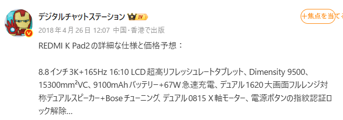 Xiaomiが4月21日に中国で発表予定の「Redmi K Pad 2」。著名リーカーDigital Chat Station氏のWeiboへの投稿により、その詳細なスペックが浮き彫りになった。小型筐体にハイエンドの魂を詰め込んだ、妥協なきスペックの全容だ。