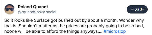 著名リーカーのローランド・クアント氏が明かした情報によれば、新型Surfaceの発売は約1ヶ月延期されるという。特に注目すべきは、オランダの小売業者から漏れ聞こえる驚愕の価格設定だ。