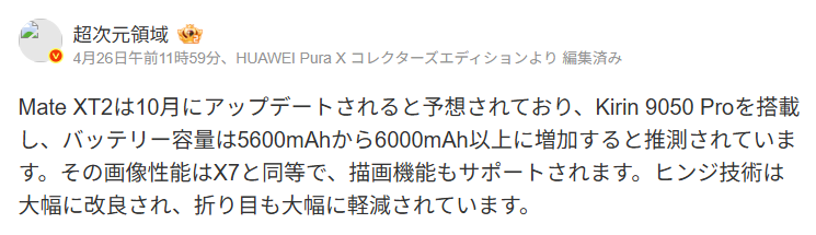 サムスンやグーグルが依然として2つ折りで足踏みする中、ファーウェイはすでにその先の完成を見据えている。Mate XT2の登場は、スマホが単なる通信機器から、ポケットに入るモバイルワークステーションへと変貌する決定打になるはずだ。独自のHarmonyOSとKirinがもたらす革新は、10月の発表会で再び世界を驚かせるに違いない。